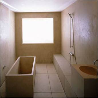 This is ‘Pawson House’, London 1994: I cannot for the life of me imagine anyone who would feel serene, calm and rejuvenated after a soak in this tub! To me, the utilisation of this space amounts to a room that resembles a large box, that has fitted furniture which resemble smaller boxes. Lots of sharp edges, harsh natural lighting and a corridor effect by having a rectangular bath situated parallel to another rectangular object. Very unappealing in my eyes.