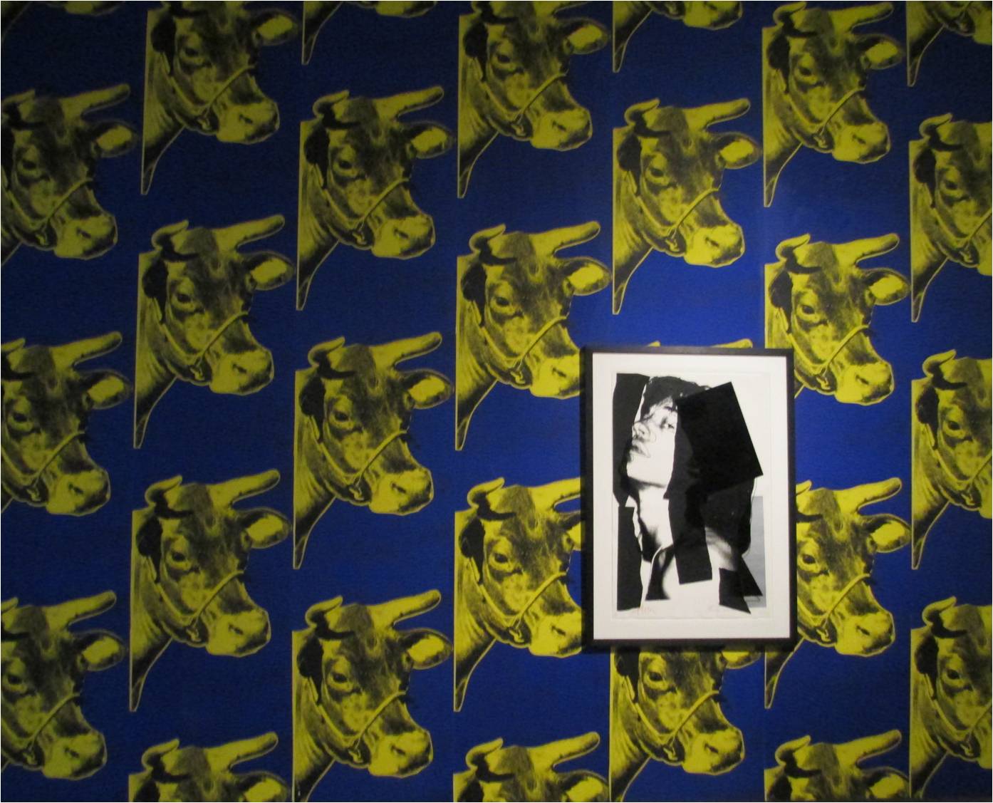 Jackie Kennedy Screenprint hanging in front of some seriously outlandish Cow wallpaper.