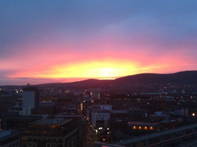 Living in a 16th floor apartment affords me the unique opportunity and privilege of having elevated views, and even though I usually take these views for granted, I do sometimes take a step back and appreciate them. There are no skyscrapers or modern architectural feats, but there is history, character, and dare I say humility in and around the streets of Belfast.