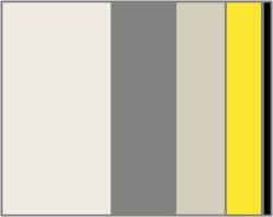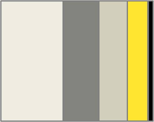 My colour palette for a contemporary colour scheme consisted of 3 different shades of grey (with the lightest shade being the dominant colour), a vibrant and strong shade of yellow, and a small amount of black. I have illustrated this colour palette in the image below – the colours have been displayed in various sizes proportionate to how they would be used in an interior.