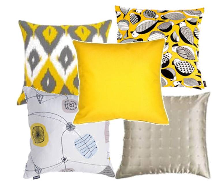 There is no question that the mid-century styled chair does a lot to help exude a bright, cheery and warm element – not only because of the choice of colour but the light-hearted pattern of flowers that it displays. The same can be said for the interesting, brightly patterned cushions, where yellow is used heavily. I have deliberately chosen silk fabrics to soften and add a sense of luxury to this colour palette also. The punctuations of black add to the contemporary styling and visually striking contrast with grey and yellow.