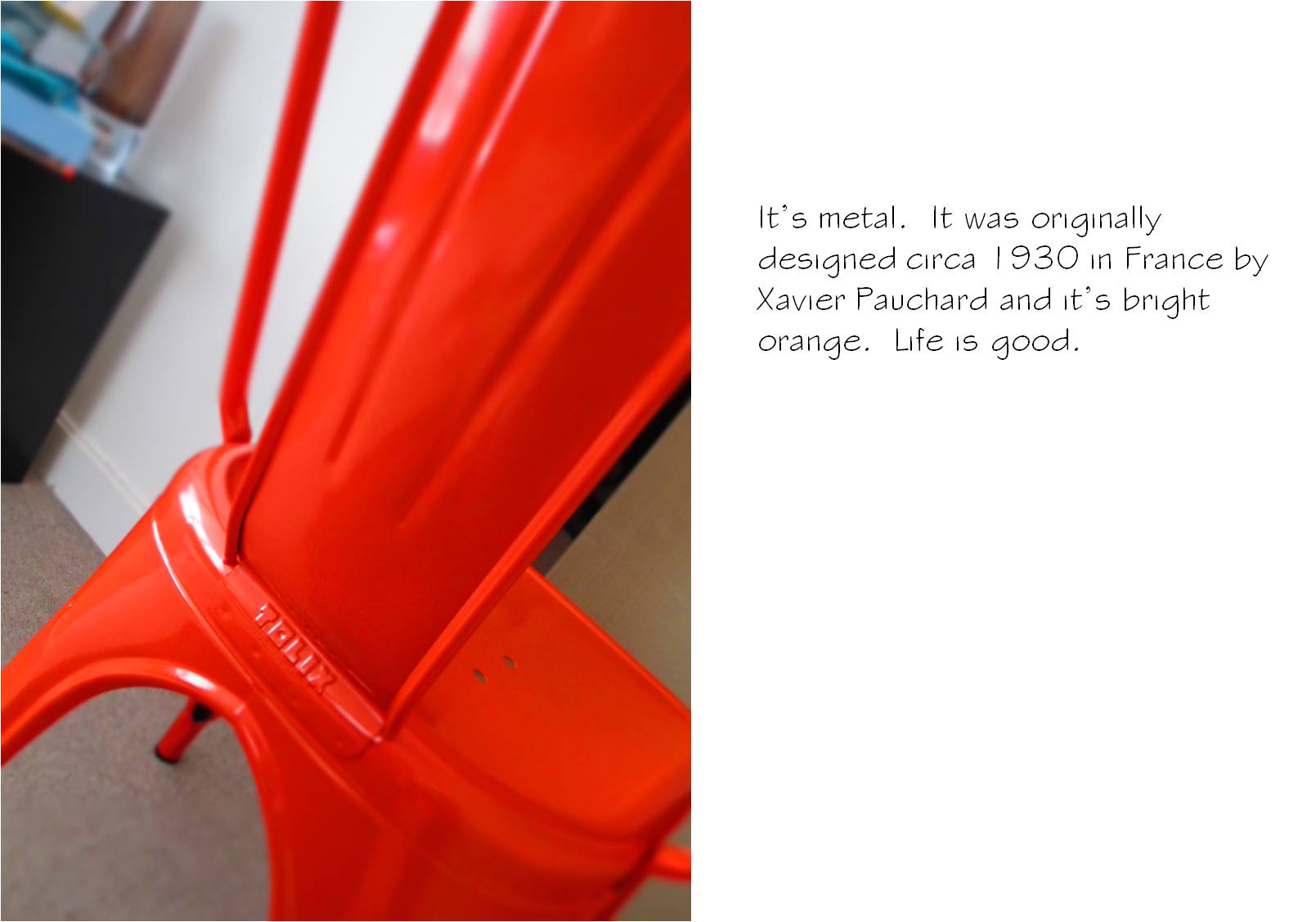 […] It reinforces the industrial vibe AND the accent colour of orange. It’s the one and only Tolix. […]