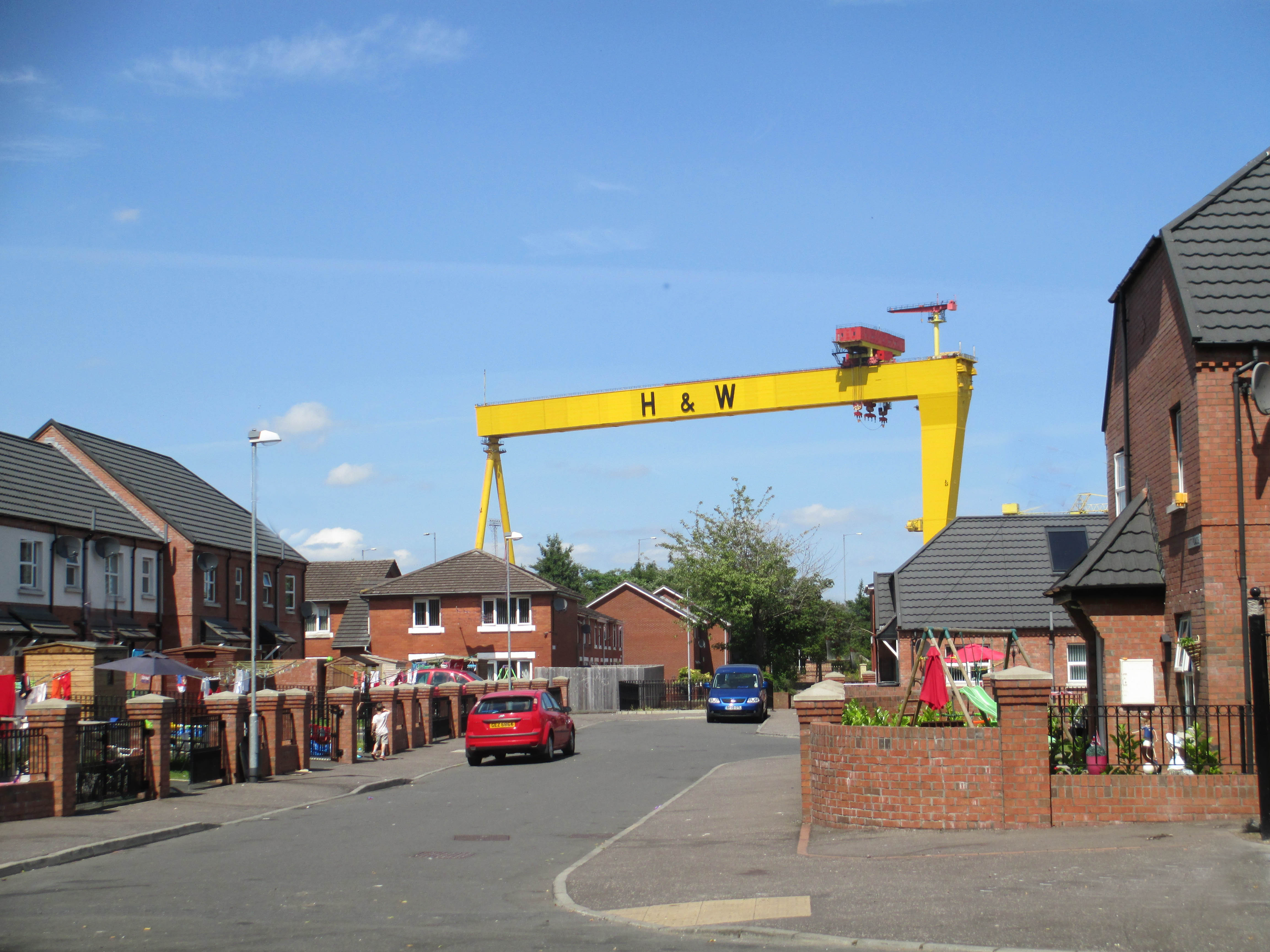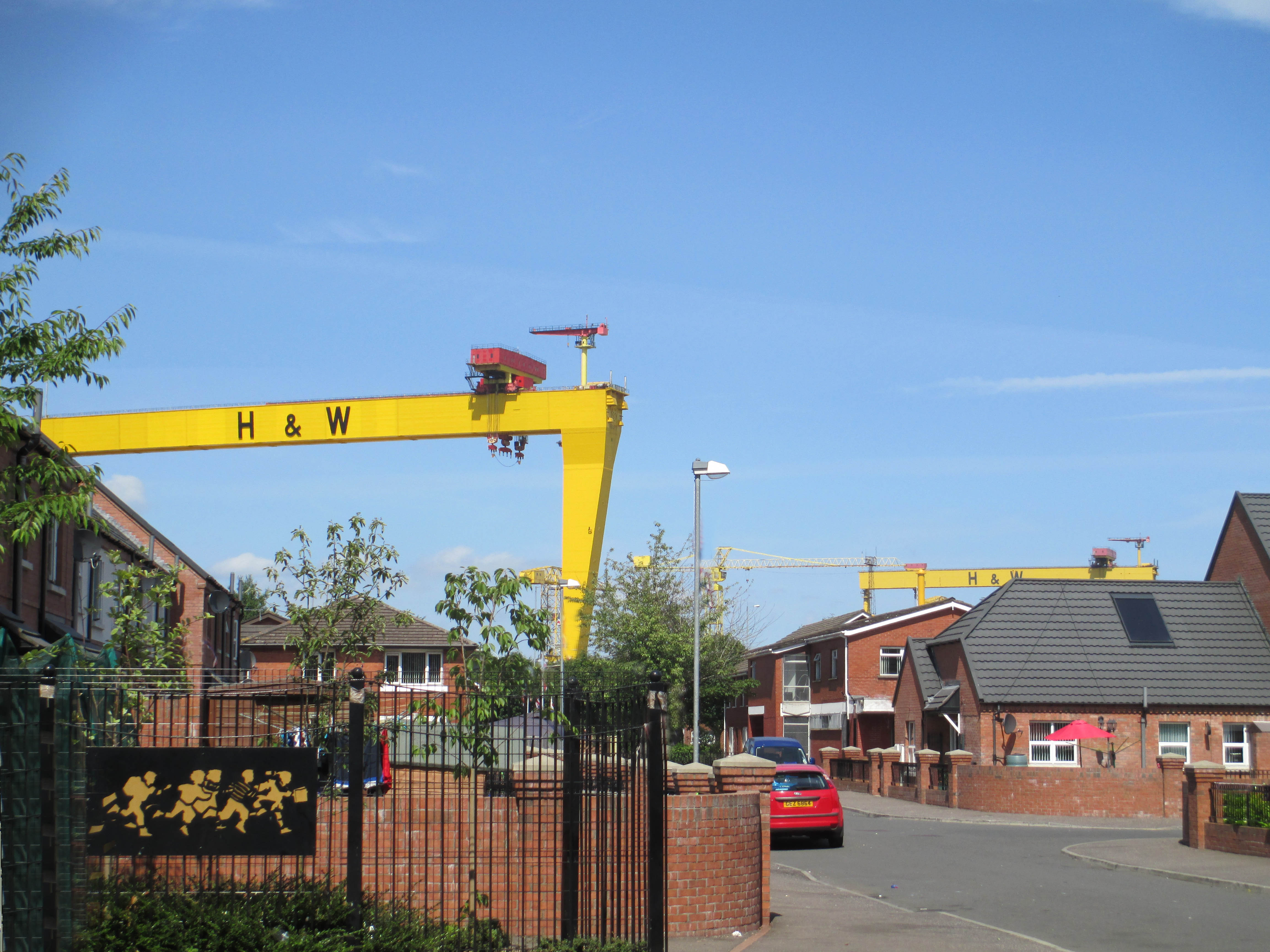 Whilst Harland & Wolff is still very much in business today its focus has shifted from shipbuilding to structural engineering; however the Samson and Goliath shipbuilding cranes that were built in 1969 and 1974 respectively are now a dedicated historical monument and dominate the Belfast skyline. I took these photographs today from a residential area on the periphery of Belfast city. The visual impact of these cranes can only truly be appreciated in person but I hope these photographs convey their dominating presence. It looks as though I’ve superimposed the cranes into the photo but trust me, these photographs are a true reflection of the view from this street in Belfast. Amazing.