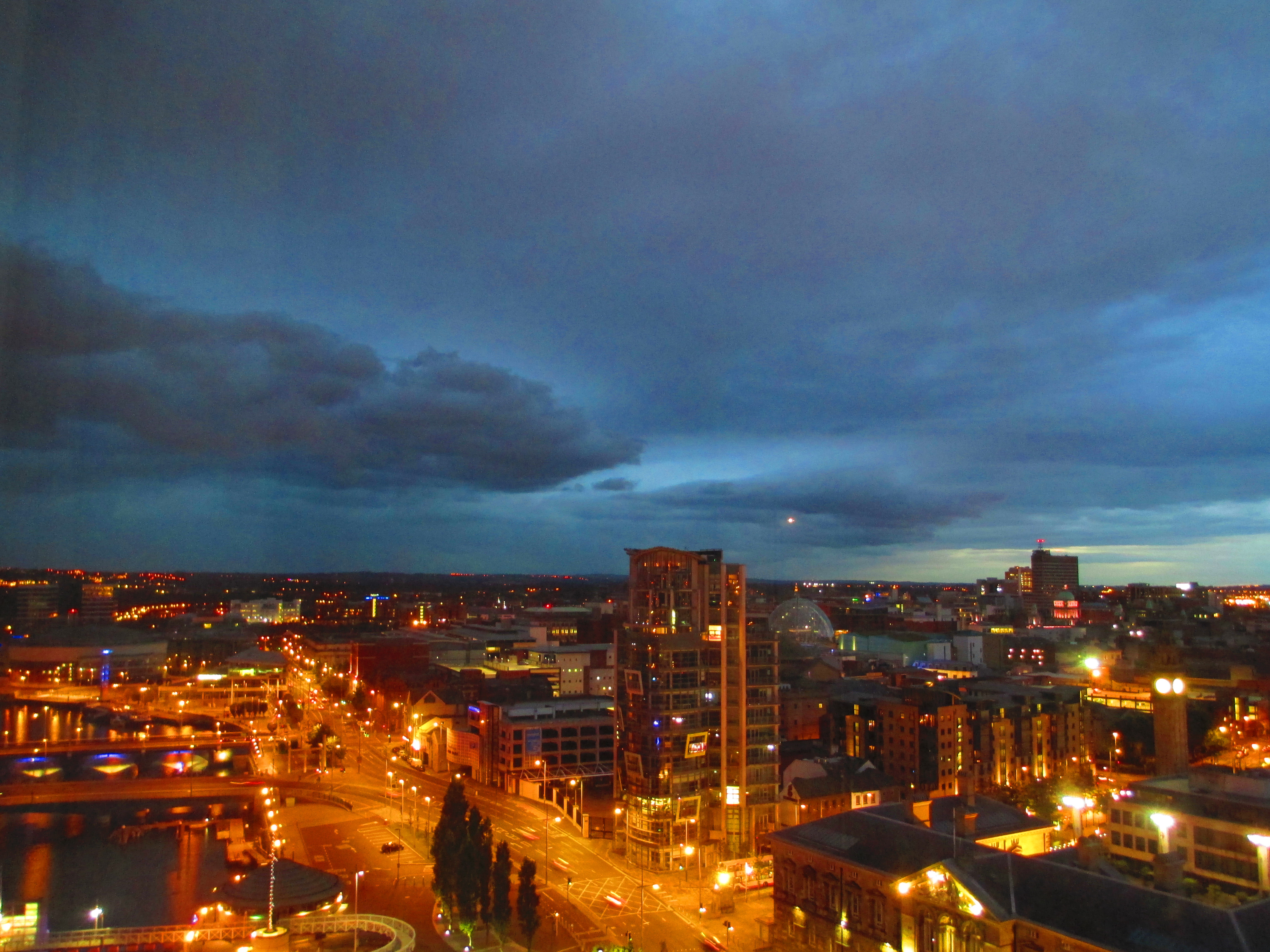 I was sitting in my apartment (in Belfast city centre) minding my own business (for a change) when I caught sight of a bunch of menacing clouds. Naturally, I grabbed my camera. 50 photos later and I’ve narrowed them down to these two. These have not been doctored in any way (as a result you might see the odd reflection from my window). The only setting I chose on my trusty camera was ‘low light’ which does represent the general lighting/environment conditions very accurately.