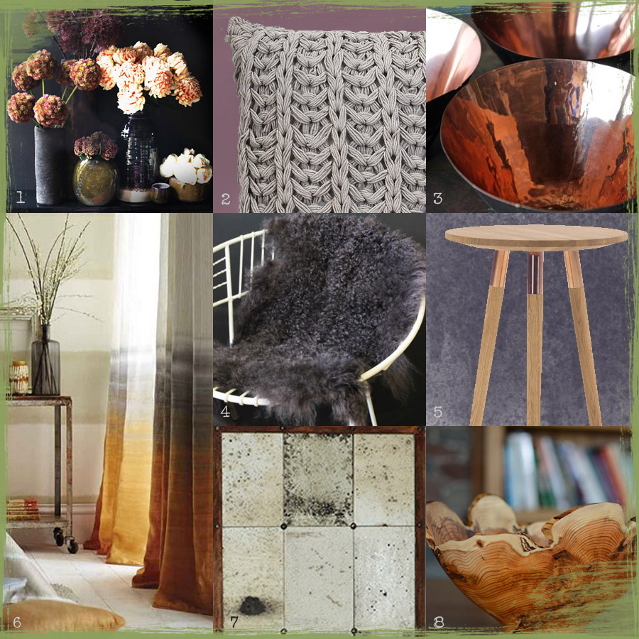 7. It’s difficult to appreciate this antique mirror in my presentation board but its rustic quality was the main reason for its inclusion in my Autumnal theme.  It’s from Occa-Home and adds a dollop of vintage charm and character.